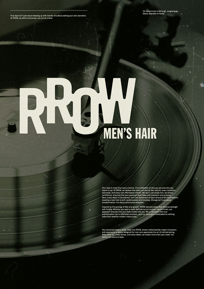 Branding design for RROW, a men’s hair salon based in South Korea.