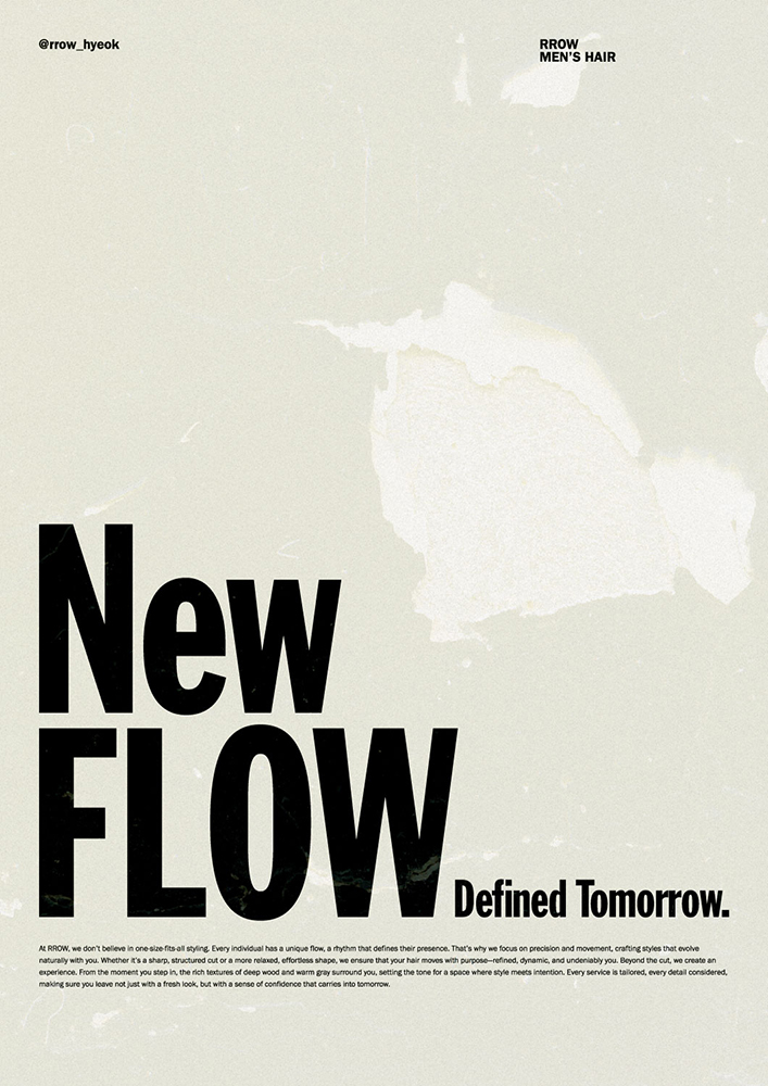 For RROW Men’s Hair, we developed a bold yet fluid visual identity that reflects the brand’s slogan, “New flow, Defined Tomorrow.” The logo design interprets the idea of ‘flow’ through dynamic curves integrated into strong, structured forms, symbolizing both masculine confidence and the evolving sophistication of style. By balancing bold typography with subtle organic movements, the identity communicates LeLow’s role as more than a hair salon—a refined space where modern men can define their next chapter with style and precision.